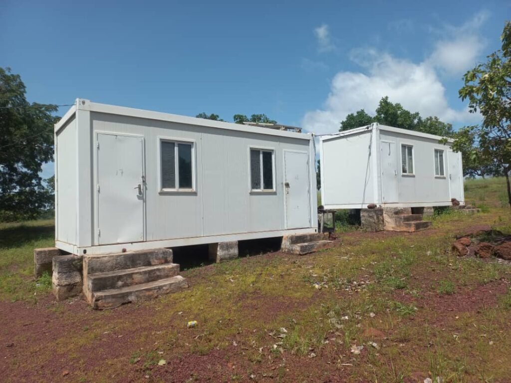 Description : Conteneur transformé en logement fonctionnel pour les équipes sur site, avec isolation et aménagement moderne.